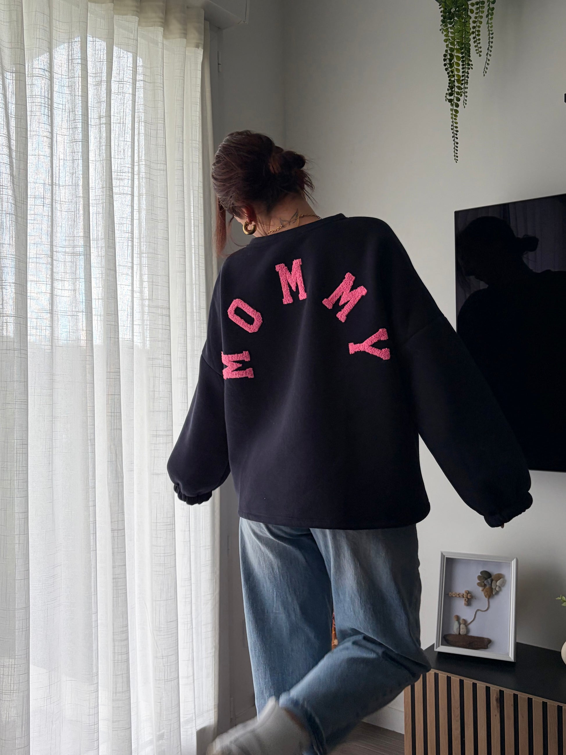 - sweat inscription « Mommy » bleu marine et rose