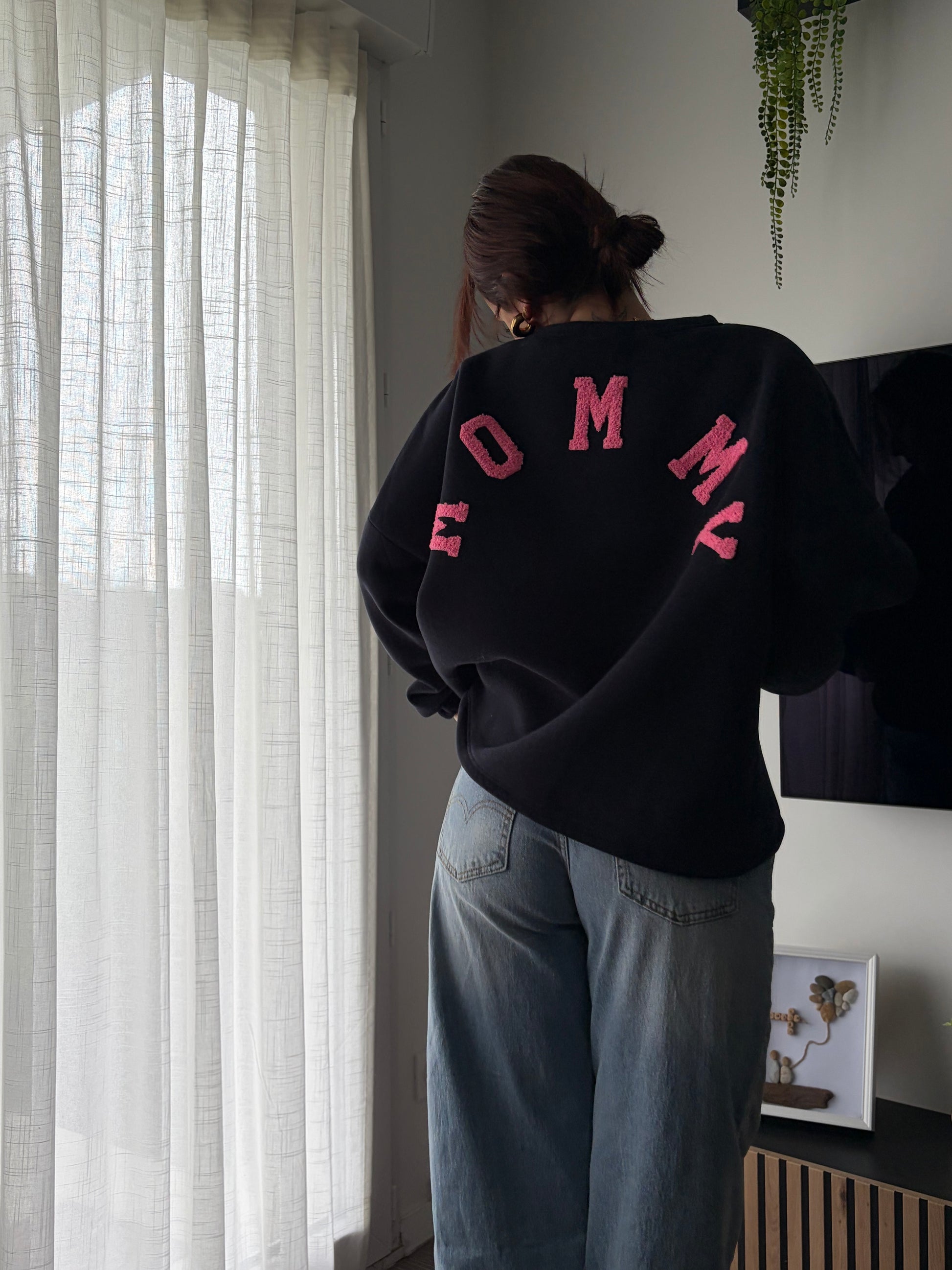 - coupe oversize, matière très agréable à porter, molletonné à l’intérieur